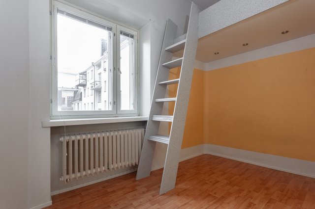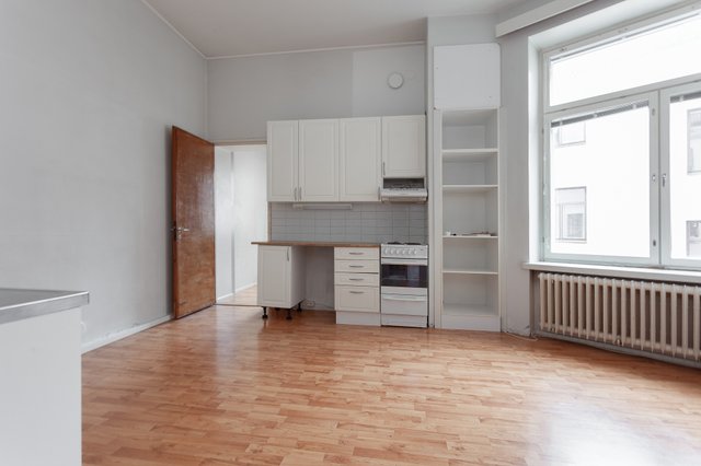 Viidennen kerroksen parvekkeellinen tilava kolmio remontoitavaksi - mahdollisuus tehdä asunnosta 4h kokonaisuuden!