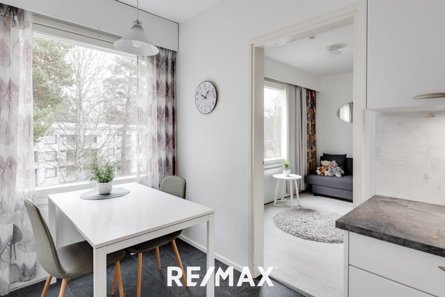 Tästä kodista on pidetty hyvää huolta ja se onkin muuttovalmiissa kunnossa. Pohjaratkaisu sopii hyvin pienelle perheelle tai sitten esim. pariskunnalle, joka kaipaa esim. työ- tai vierashuonetta. Asunnossa on erillinen keittiö ja kaksi makuuhuonetta sekä tilava olohuone, josta on kulku parvekkeelle. Kylpyhuone on remontoitu putkiremontin yhteydessä ja siellä on paikka pesukoneelle. Läpitalonasunto sijaitsee talon ylimmässä, kolmannessa kerroksessa ja sieltä on mukavan avarat näkymät pihoille.