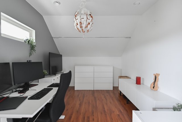 Autotalli ja varastotilat tuovat käytännöllisyyttä arkeen. Talossa myös valokuitu, joten etätyöt onnistuvat vaivatta. Kruunun alueella on hyvät palvelut ja kulkuyhteydet, joten arki sujuu vaivattomasti.