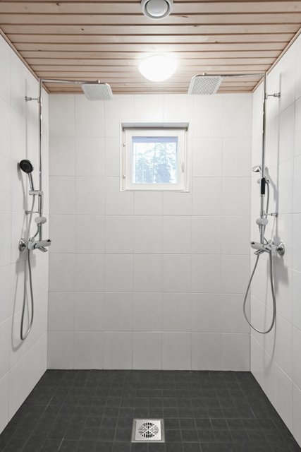 Vessoihin vaihdettu altaat, hanat ja allaskaapit. Suihkut vaihdettu 2018