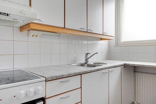 - Keittiö vaatii remonttia. Keittiön kaapistojen taustalevyt on uusittu ja sen jälkeen vanhoja kaappeja ei ole asennettu enää takaisin.