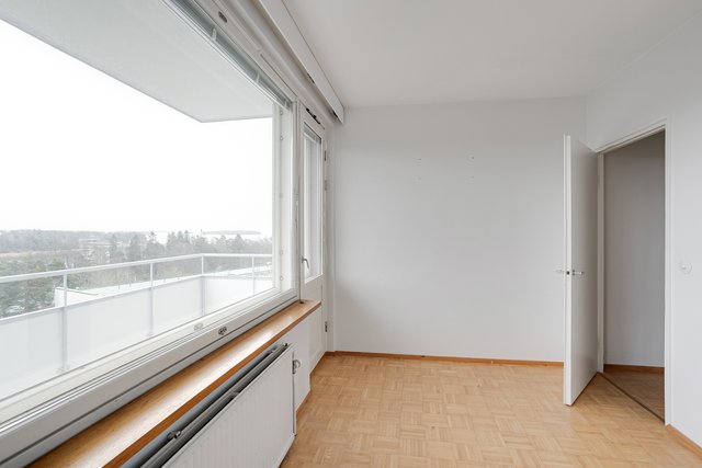 Tapiolan sydämessä sijaitseva valoisa kolmio tarjoaa upeat merinäköalat isoista ikkunoistaan. Tämä 58 neliöinen asunto sijaitsee seitsemännessä kerroksessa, ja siitä on helppo pääsy kaikkiin Tapiolan palveluihin, jotka ovat kävelymatkan päässä. Liikenneyhteydet ovat erinomaiset, sillä läheltä löytyvät sekä bussipysäkki että metroasema.