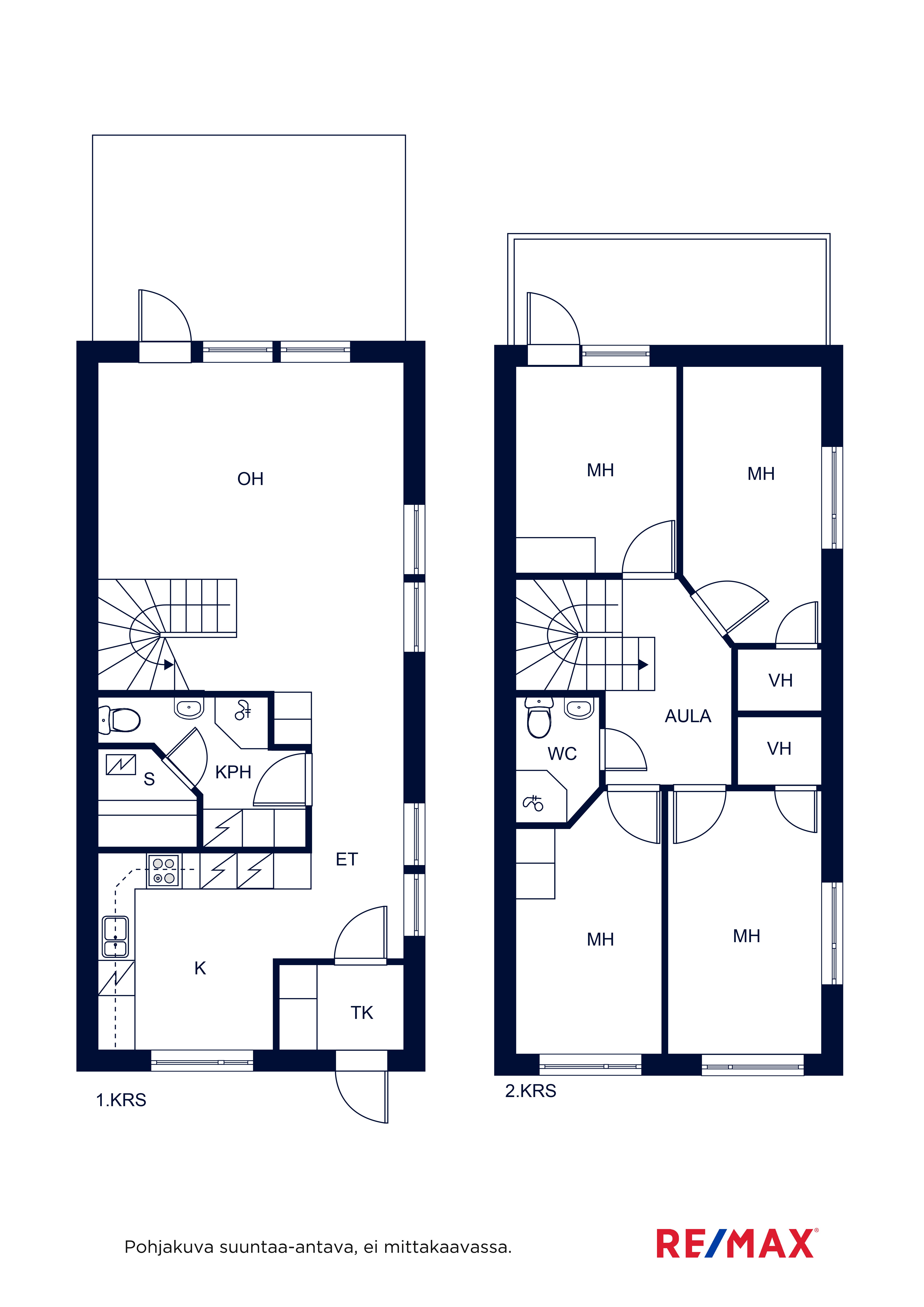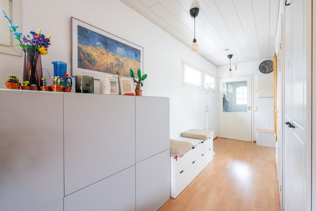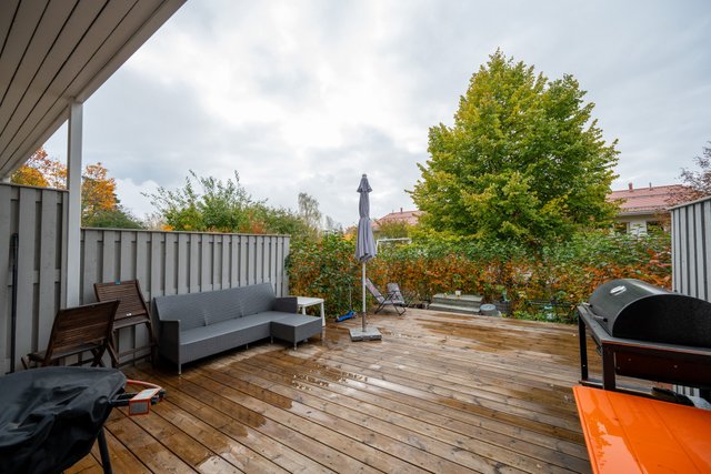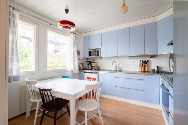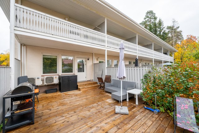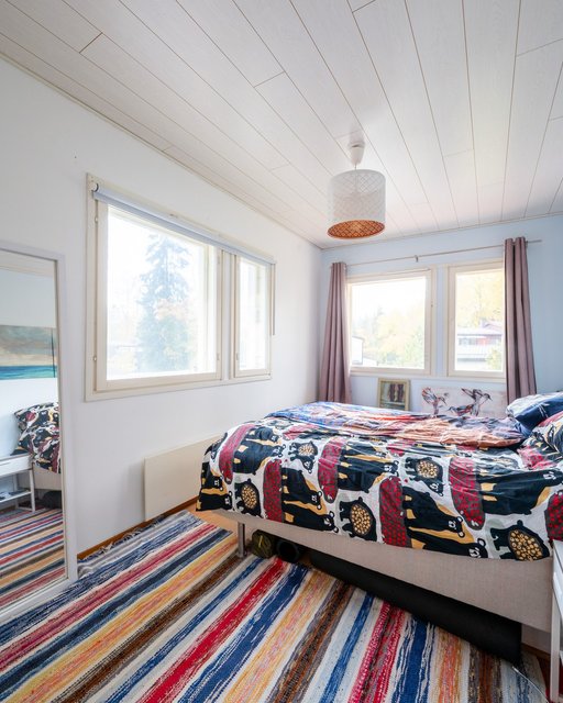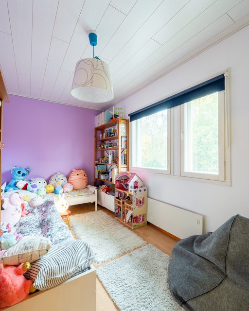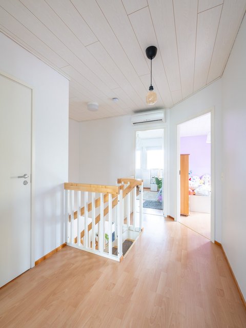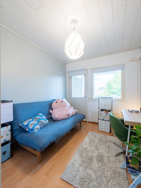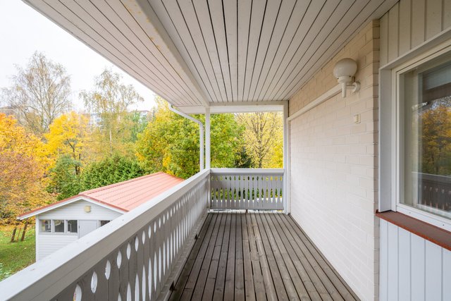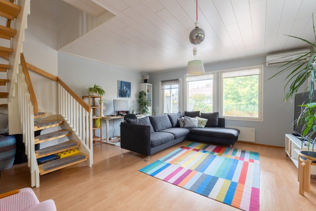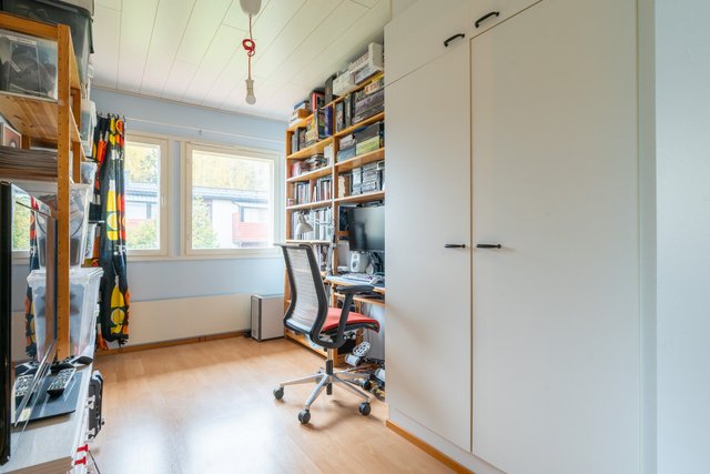 Asunto itsessään tarjoaa hyvät tilat perheen käyttöön. Neljä makuuhuonetta, vaatehuoneet, kylpyhuone molemmissa kerroksissa ja runsaat säilytystilat. Auton saa parkkiin melkein ovelle.