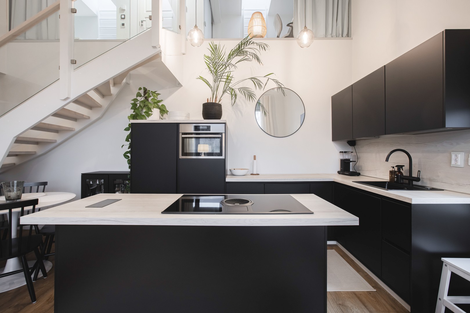 - Kaapistot Noblessa-keittiöt, saarekkeessa hella ja liesituuletin. Valaistusvaihtoehdot säädettävissä säätimellä.