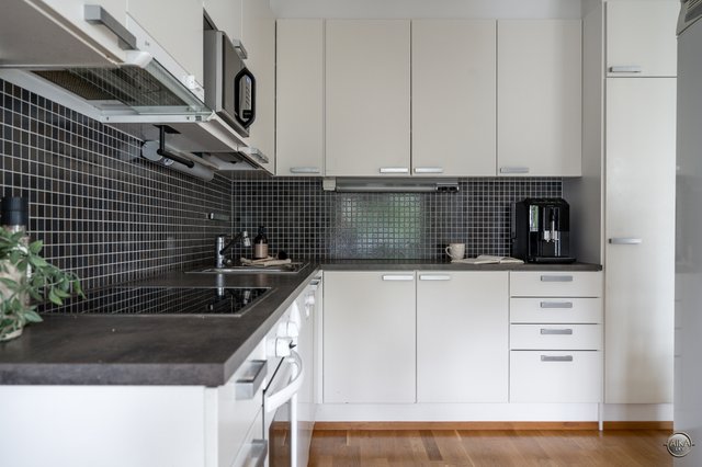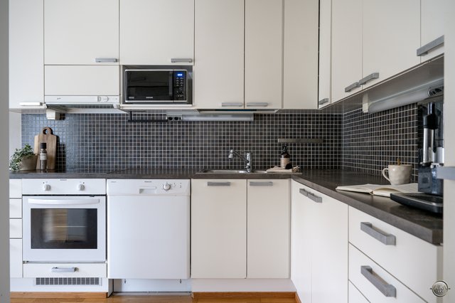 - Jääkaappi, pakastekaappi, erillisuuni, liesituuletin, liesi, ja astianpesukone