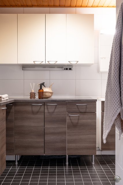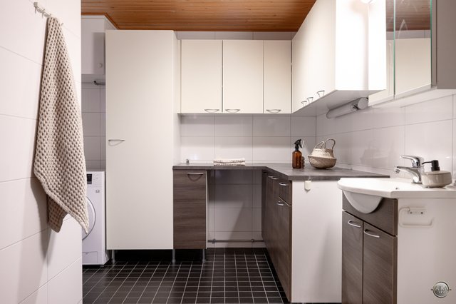 - Kodinhoitotilat saunaosaston yhteydessä. Reilusti kaappeja ja laskutilaa.