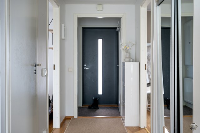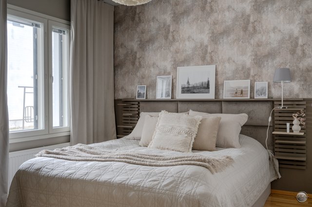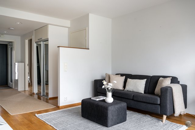 Kylpyhuoneen yhteydessä olevat kodinhoitotilat tarjoavat runsaasti säilytystilaa ja laskutilaa, ja erillinen wc lisää arjen mukavuutta. Asunnon kaksi tilavaa makuuhuonetta takaavat rauhalliset yöunet, ja toisen makuuhuoneen yhteydessä on kätevä vaatehuone.