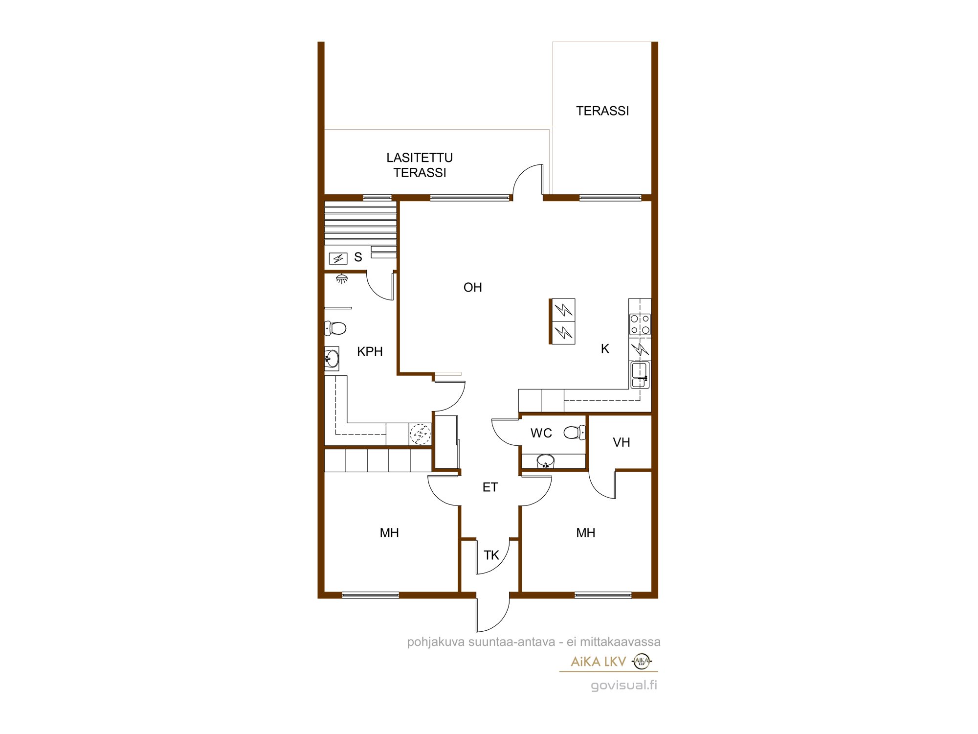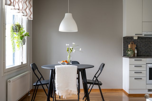 - Pesukoneliitäntä, lattialämmitys, silityspöytä/taso, pyykkikaapit, tila pesutornille, ja keskuspölynimuri