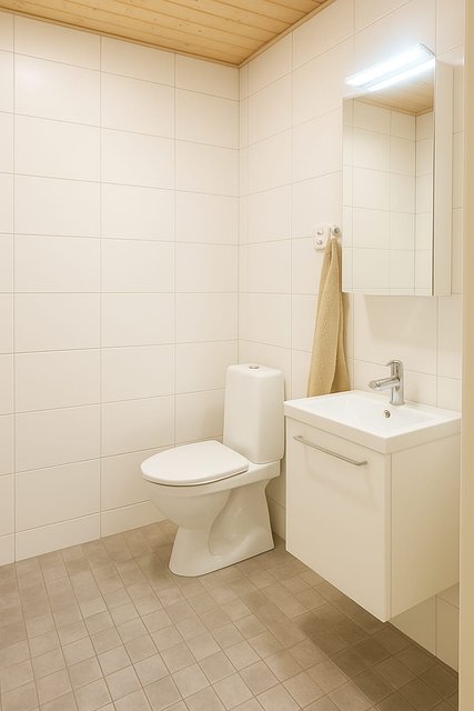 - WC-istuin, suihku, lattialämmitys, ja pesukoneliitäntä