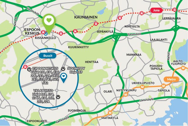 - Bussipysäkki lähellä, juna-asema lähellä, hyvät pyöräilytiet ja hyvä kulkuyhteys