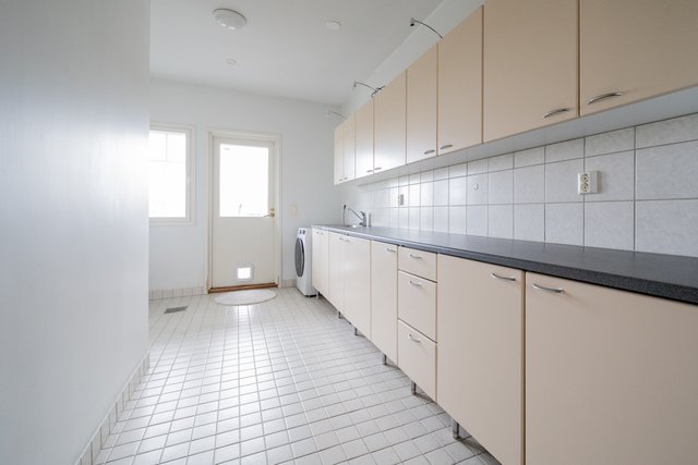 - Runsaasti kaappitilaa sekä laskutasoa ja pesuallas. Tila pyykinpesutornille. Uloskäynti sivuterassille, jonka kautta kulkuyhteys ulkoporealtaaseen sekä paljulle.