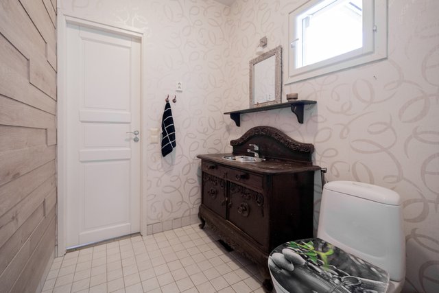 - Alakerrassa on erillinen wc, johon on kulku eteisaulasta sekä makuuhuoneesta. Pesuhuoneessa toinen wc-istuin. Yläkerrassa on erillinen wc, jonka yhteydessä myös suihkutila.