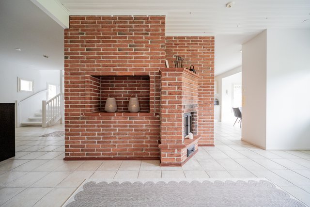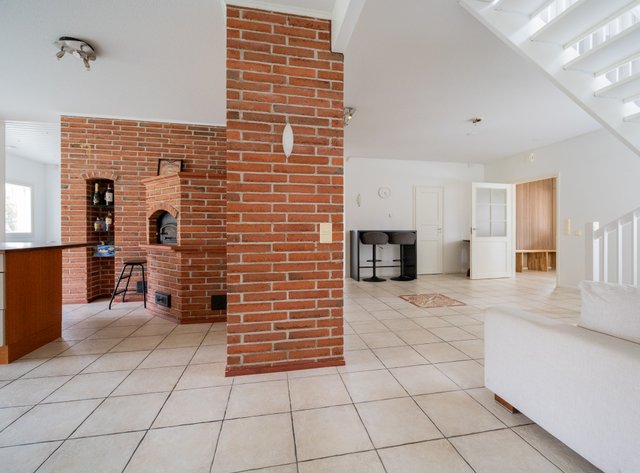 - Leivinuuni keittiössä ja takka
