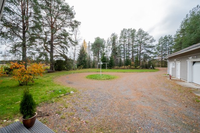 - Talon takana on iso nurmialue jossa on tilaa temmeltää. Tontilla olevaan isoon koivumetsään on rakennettu 12 väyläinen frisbeegolfrata sekä maastopyöräreitti. Pihalla on kasvihuone ja tilaa hyötykasvien kasvatukseen. Tällä hetkellä takapihalla kasvaa herukkaa, omenoita ja kirsikoita.