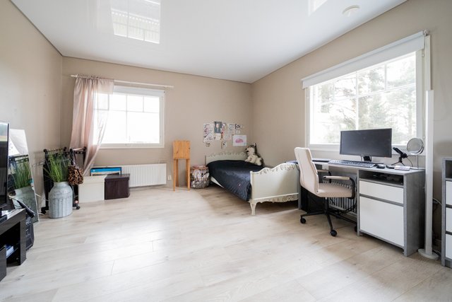 - Pohjapiirroksen mukaan virallisesti neljä makuuhuonetta, kaksi alakerrassa ja kaksi yläkerrassa. Yläkerrassa lisäksi suuri työhuone, jota käytetään tällä hetkellä makuuhuoneena.