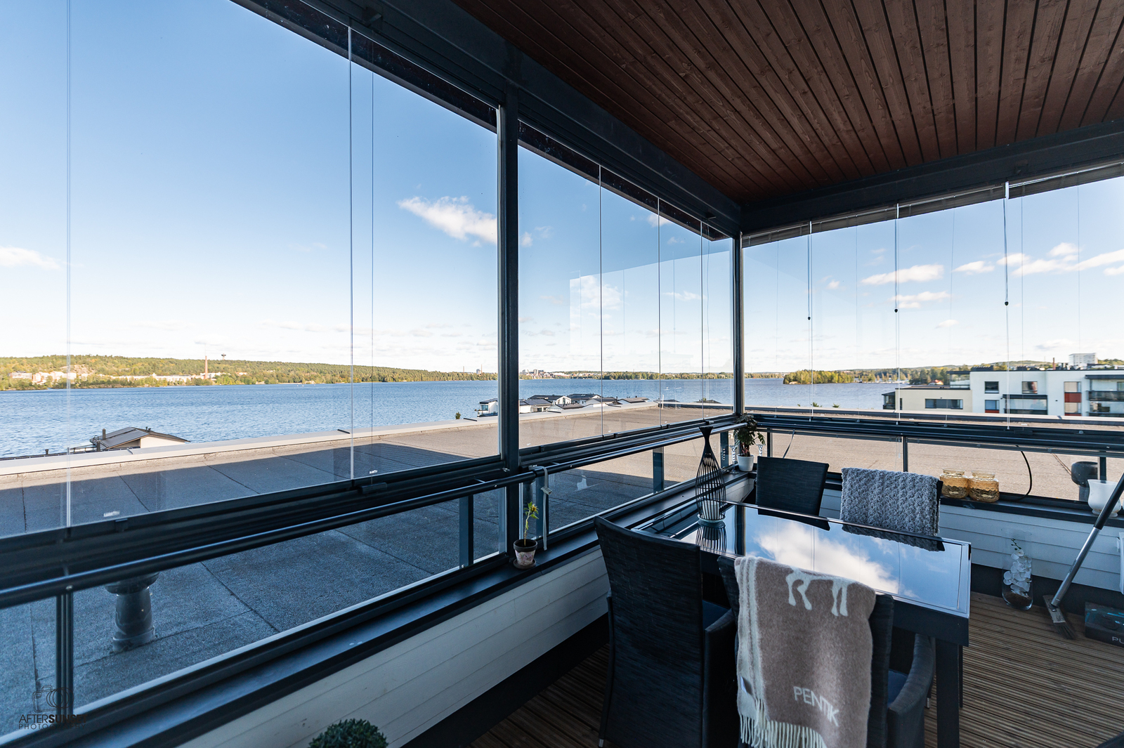 Tämä ylellinen kattohuoneisto tarjoaa todella suojaisaa ja rauhallista asumista omassa kerroksessaan mahtavilla Pyhäjärvinäkymillä. Tässä tyylikkäässä ja valoisassa kodissa on erittäin toimivat ja avarat tilaratkaisut. Kodin suuri ja avara olohuone on avoinna ruokailutilaa ja keittiöön ja siltä on käynti suurelle kattoterassille. Makuuhuoneita on neljä, joista yksi omalla sisäänkäynnillä mahdollistaen esimerkiksi vastaanoton pitämistä kodin yhteydessä. Päämakuuhuoneessa on oma kylpyhuone ja suuri lasitettu parveke lännen suuntaan. Asunnossa on tilava kodinhoitohuone jonka yhteydessä vaatehuone, helpottamassa arjen askareita. Sauna- ja pesutilat ammeineen ovat tilavat ja niiden yhteydessä työ/pukuhuone. Huoneistossa on kaikkiaan kolme erillistä kylppäriä/wc:tä.