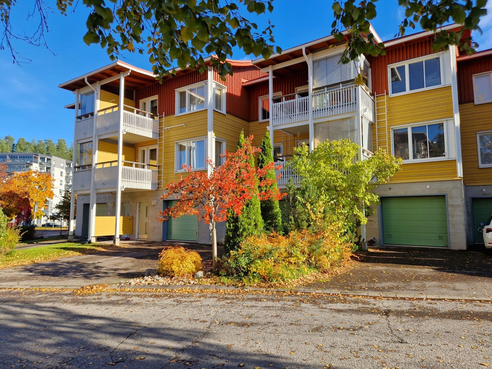 - jokaisella huoneistolla oma autotalli ja pihapaikat