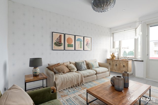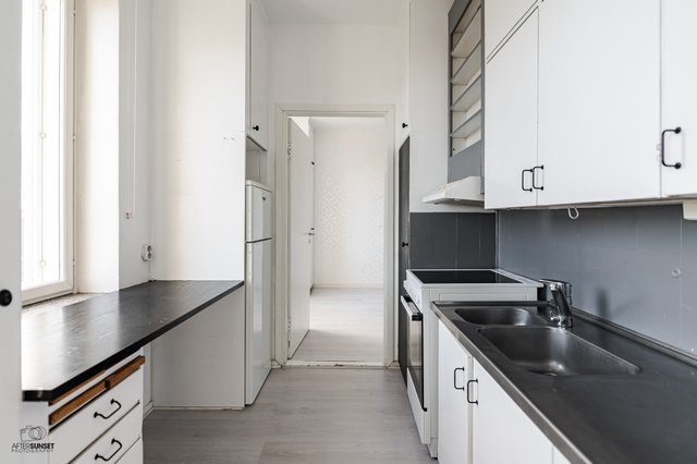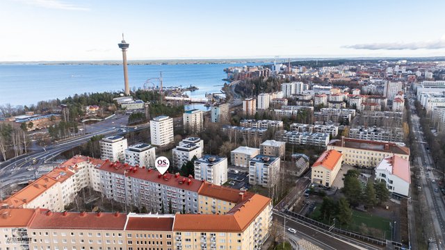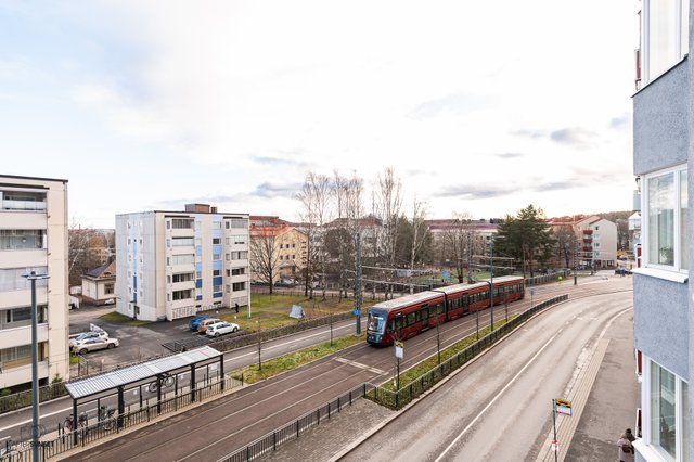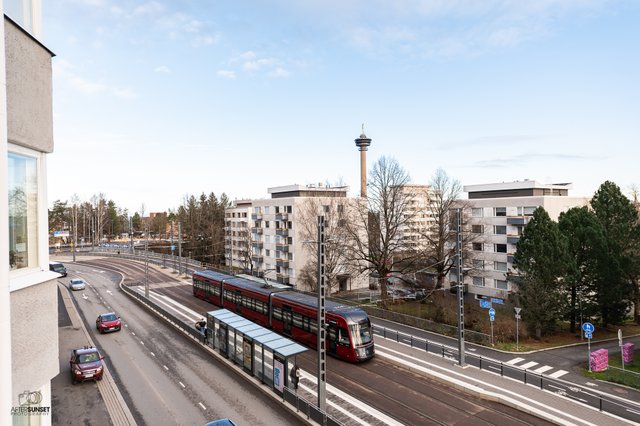 Ratikkareitin varrelta valoisa koti. Sisällä hiljaista eikä keskustan liikennemelu häiritse, vaikka ratikkapysäkki lähes parvekkeen alla. Neljännen kerroksen näppärä citykoti.