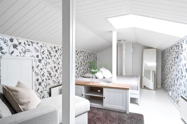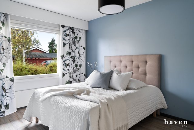- Tilava makuuhuone, jonka yhteydessä iso vaatehuone. Lisäksi 18,5 neliön käyttöullakko joka soveltuu hyvin vaikka toiseksi makuuhuoneeksi.