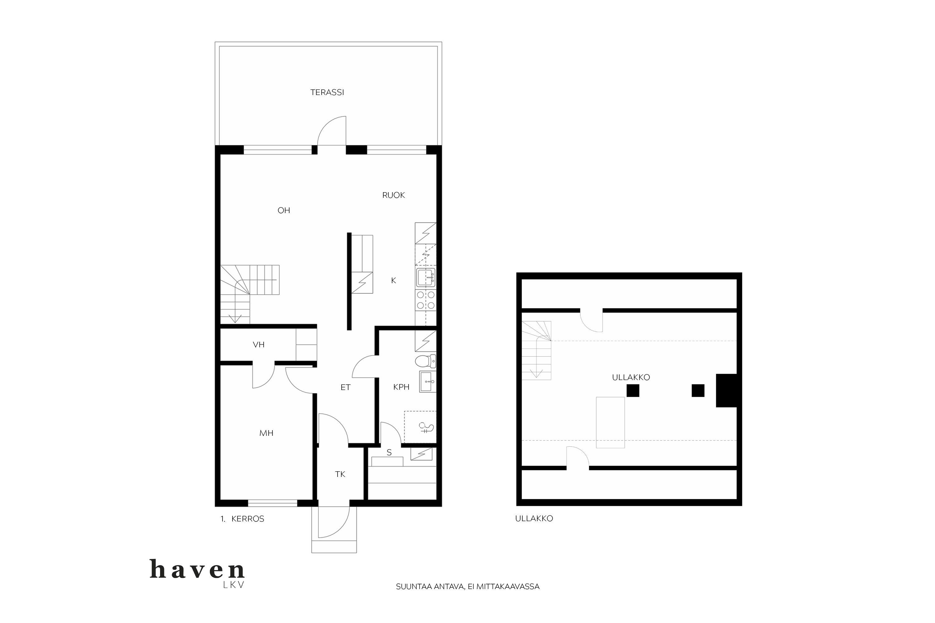 - Käyttöullakko 18,5 m2. Tilassa iso kattoikkuna ja lapetilat molemmin puolin säilytykseen.