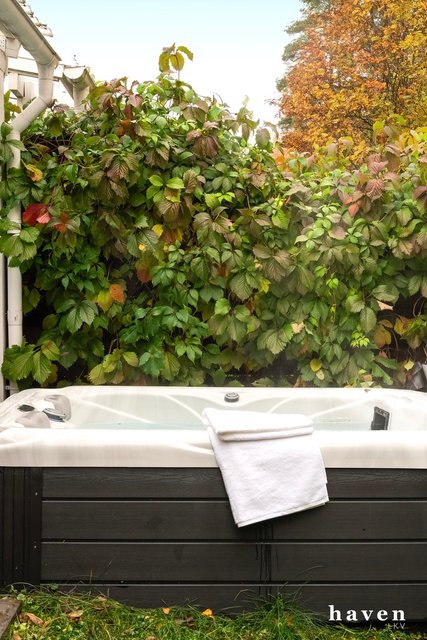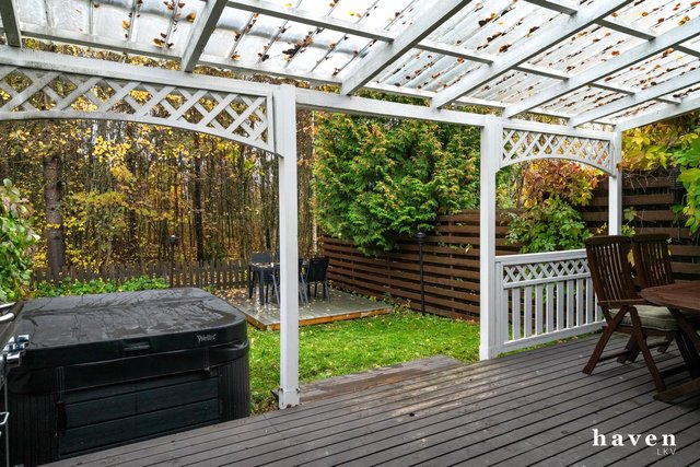 - Suojaisalla takapihalla on reilusti tilaa. Katettu terassi, avoterassi ja poreamme. Kauniit metsäiset maisemat. Taloyhtiön tontti rajoittuu puistoon.