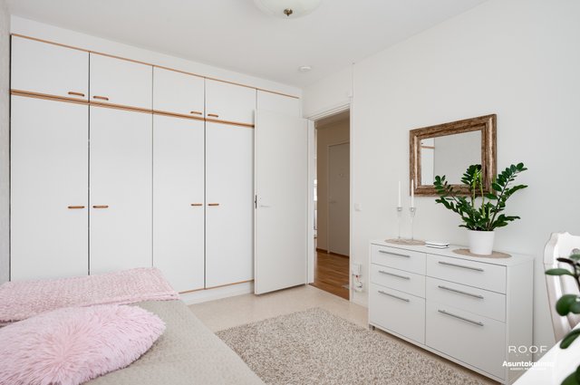 Säilytystilaa on kaapistojen ja vaatehuoneen lisäksi huoneiston edessä olevassa varastossa. Autokatospaikka sisältyy huoneiston hintaan.