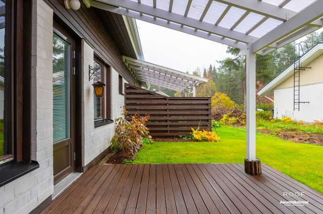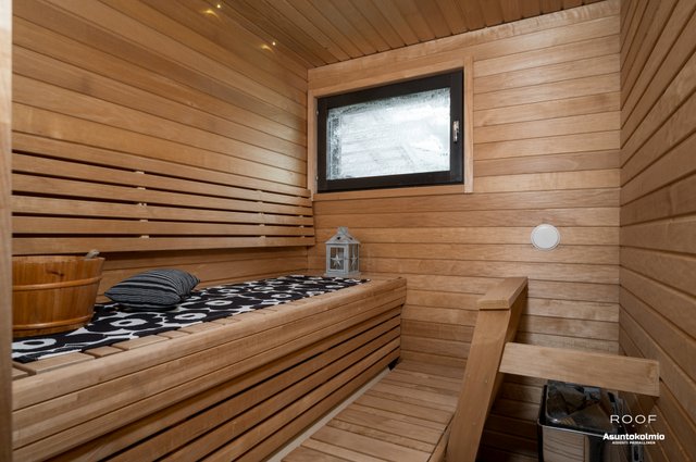 Sisään tultaessa katseen vangitsee valoisa ja tilava olohuone. Tilaan sijoitat hyvin isommankin television ja sohvan. Olohuoneesta on kulku etelänsuuntaiselle katetulle terassille. Olohuoneen yhteyteen sijoittuu hyvänkokoinen keittiö, jossa on runsaasti kaappi- ja laskutilaa. Tässä kauniissa ja hyvin pidetyssä kodissa on kaksi reilun kokoista makuuhuonetta ja toisen makuuhuoneen yhteyteen sijoittuu vaatehuone. Kylpyhuoneen yhteydessä on kodinhoitotila, jossa pöytätaso ja kaapistot tekevät tilasta toimivan. Tyylikäs sauna takaa täydellisen rentoutumishetken. Kylpyhuone, kodinhoitohuone, sauna ja wc on remontoitu 2016.