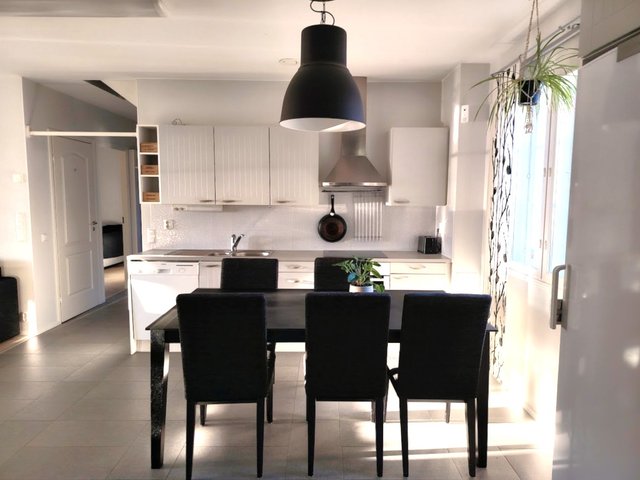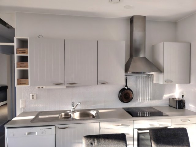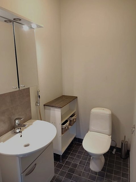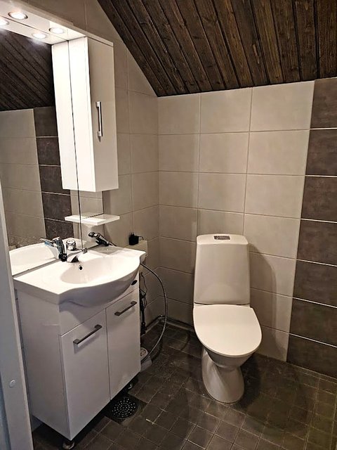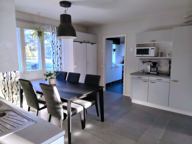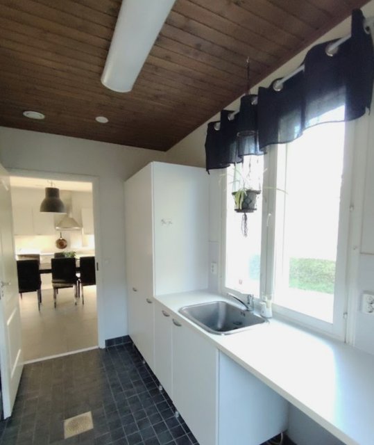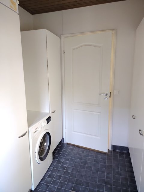 - Pesukoneliitäntä, lattialämmitys, pyykkikaapit, kurapiste, ja tila pesutornille