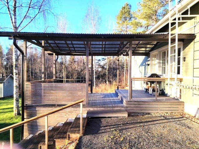 Talon kokonaispinta-ala on 166 m², ja pienellä pintaremontilla muokkaat tästä kodista juuri oman näköisesi. Takapihan valokatteinen terassi kutsuu nauttimaan kesäpäivistä ja pihapiirin suojaisuudesta.