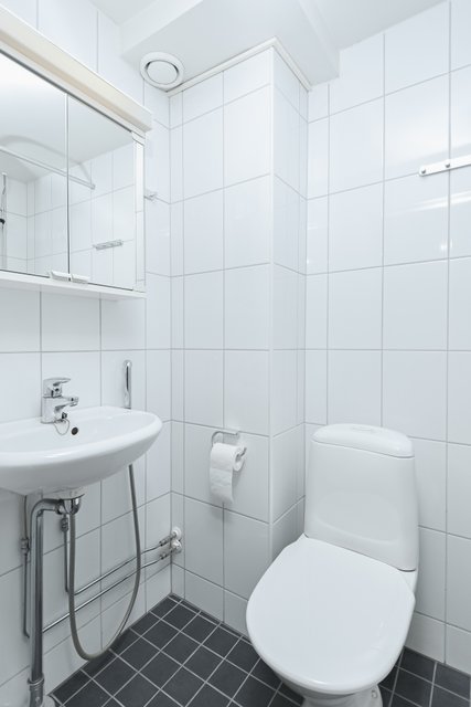 - Bidee-suihku, wc-istuin, suihkuseinä, pesukoneliitäntä, peilikaappi, lattialämmitys, ja pesuallas