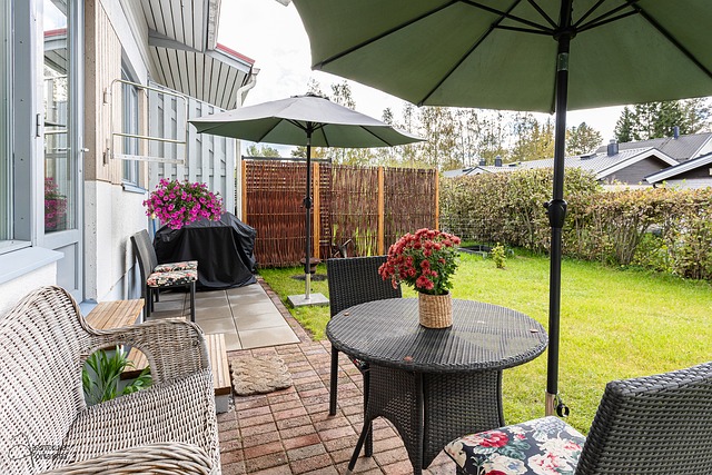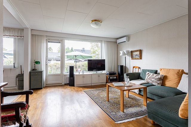 Avara olohuone, josta käynti viihtyisälle takapihalle