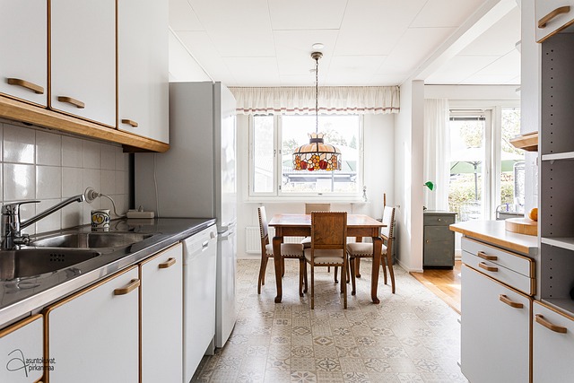 Keittiö, jossa hyvin kaappitilaa ja ruokailutila