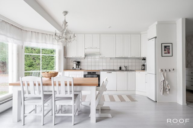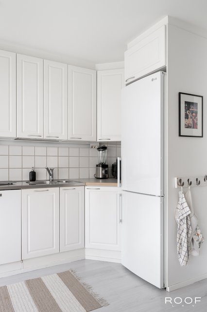 - Varustus: Jääkaappi/pakastin, induktioliesi, liesituuletin, integroitu astianpesukone. Seintä: Maalattu / Kaakeli. Työtasot: Puu / Laminaatti / Metalli. Lattia: Laminaatti.