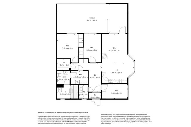 - Ei tarkistusmitattu. Pinta-ala voi siis olla edellä mainittua pienempi tai suurempi.