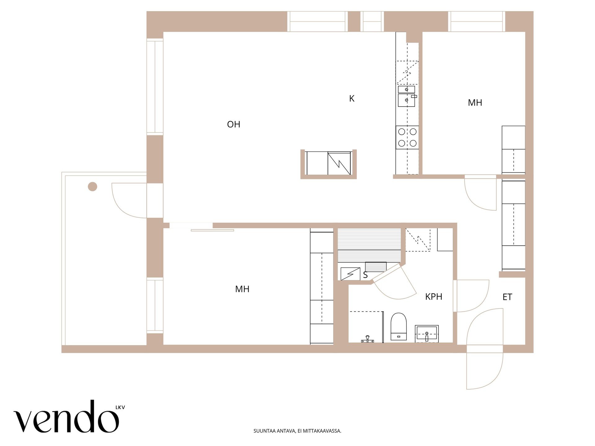 Asunnossa on moderni avokeittiö, joka on varustettu kaikilla tarvittavilla laitteilla, kuten jääkaappi-pakastimella ja astianpesukoneella. Olohuoneen ja makuuhuoneiden parkettilattiat tuovat lämpöä ja tyylikkyyttä tiloihin. Kylpyhuone ja sauna tarjoavat rentouttavat puitteet arjen kiireiden keskellä.