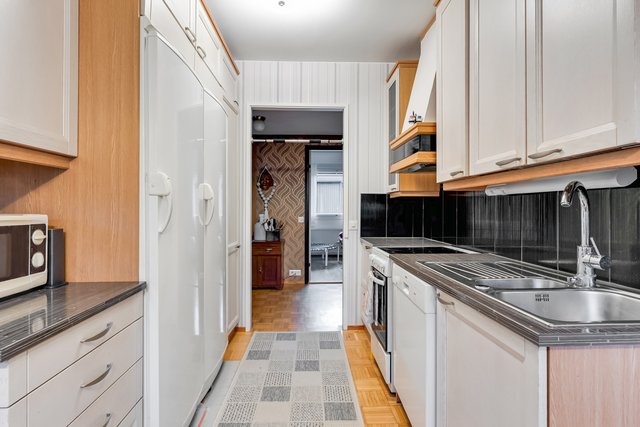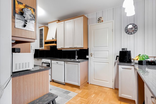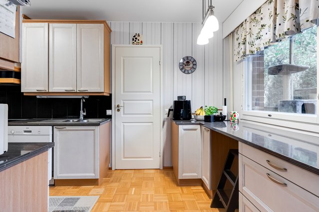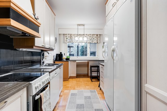 - jääkaappi, pakastin, keraaminen liesi, liesituuletin, astianpesukone, kaapistot (Puustelli)
