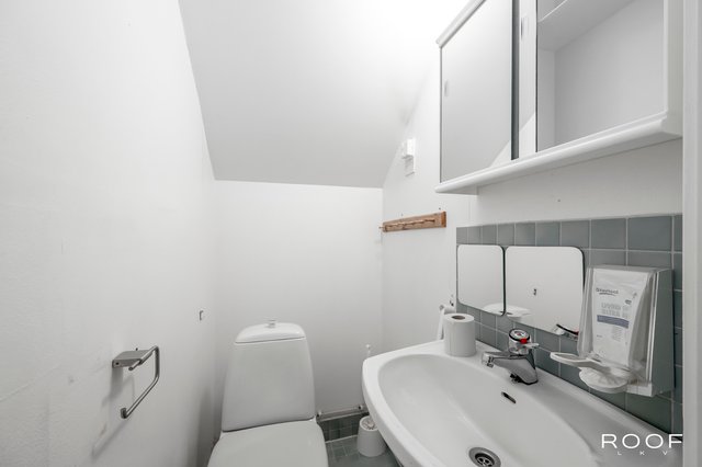 - Alakerran kylpyhuone VARUSTUS: Suihku. SEINÄT: Laatta. LATTIA: Laatta. Yläkerran kylpyhuone VARUSTUS: Suihku, lavuaari ja wc-istuin. SEINÄT: Puupaneeli ja levy. LATTIA: Muovimatto.