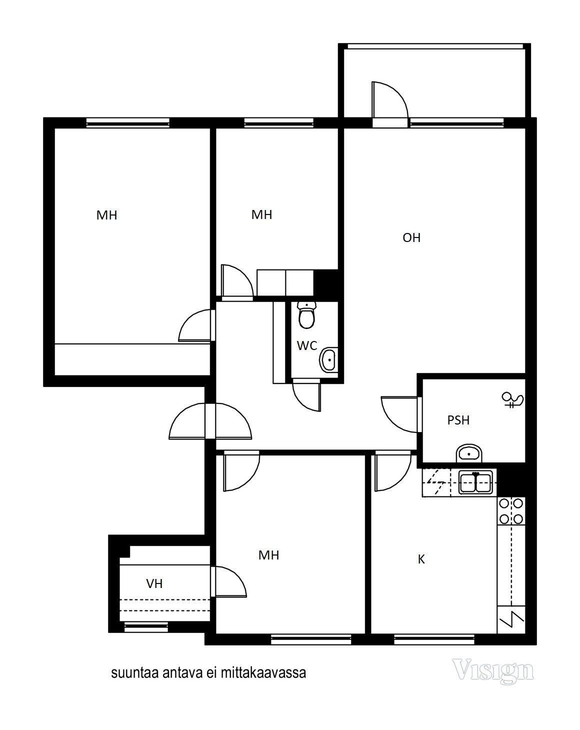 Asunnossa on kolme makuuhuonetta, jotka tarjoavat runsaasti tilaa perheelle. Olohuone ja keittiö ovat valoisia ja avaria. Keittiössä on kaikki tarvittavat varusteet, kuten jääkaappipakastin, liesi ja astianpesukone. Kylpyhuoneessa on suihku ja pesukoneliitäntä, ja erillinen WC tuo lisämukavuutta arkeen.