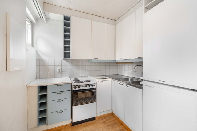 - asunnon parketti on kulunut, keittiön kaapistot vaativat remonttia