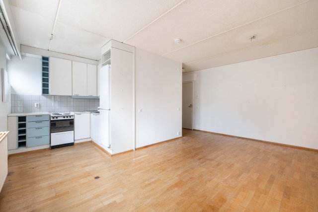 Tässä tehoneliöisessä asunnossa on ikkunallinen keittokomero, kylpyhuone, makuuhuone ja olohuone, josta on käynti osittain lasitetulle parvekkeelle. Kylpyhuone on juuri uusittu putkiremontin yhteydessä.