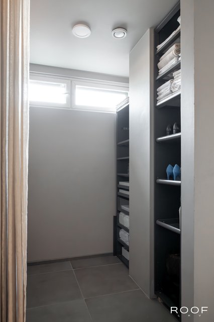 - Eteisessä vaatehuone säilytysjärjestelmällä, hyllyissä valaistukset.
