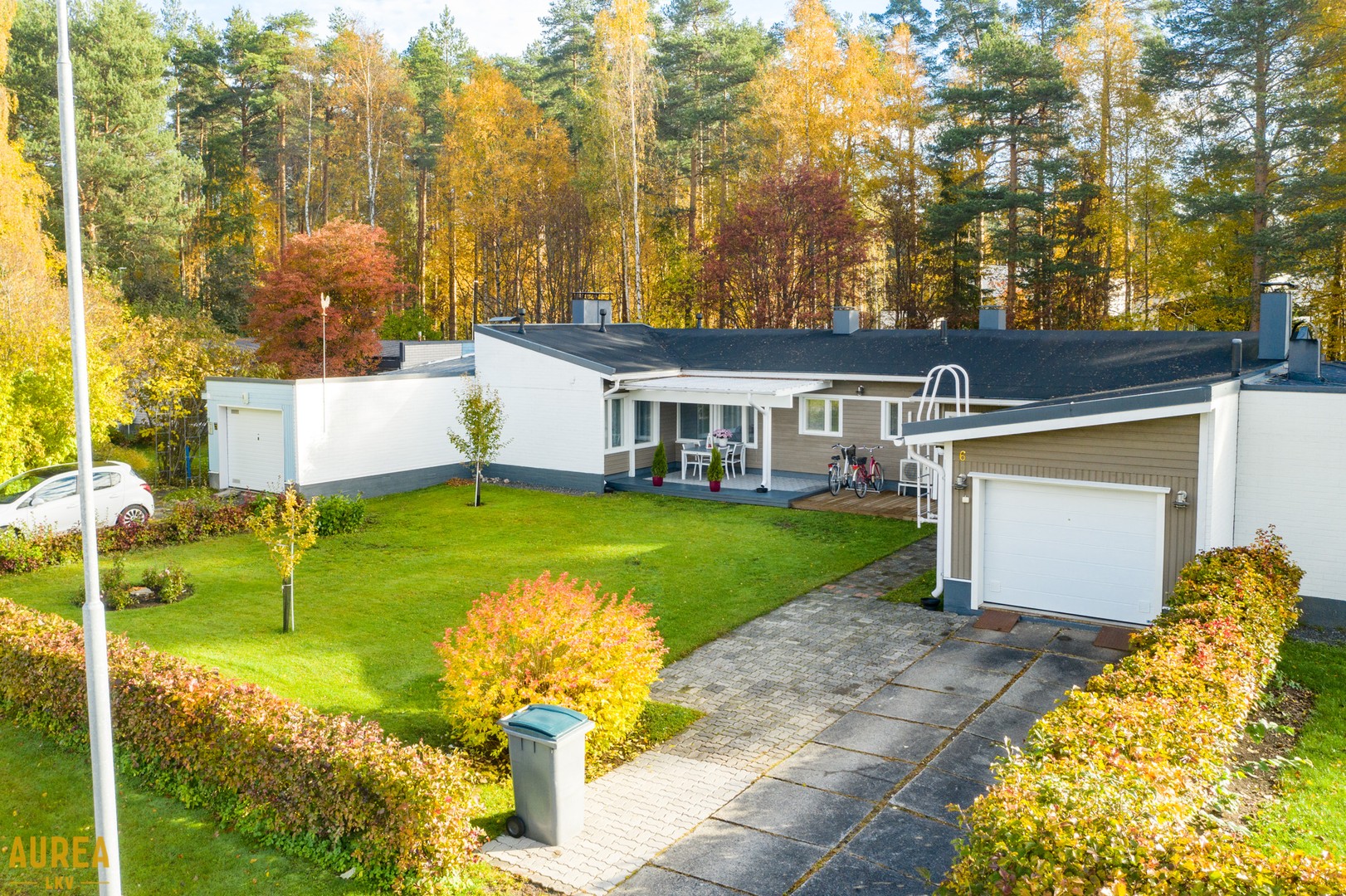 Omakotitalossa kolme hyvänkokoista makuuhuonetta, tilava olohuone, keittiö, kylpyhuone sekä wc. Erillisessä siipiosassa sauna, kylpyhuone ja viihtyisä saunakamari sekä lämpöeristetty autotalli. Rakennukset yhdistetty saman katon alle kattoremontin yhteydessä 2012. Kylpyhuone, jossa tilaa myös pyykkihuollolle on vesieristetty ja remontoitu. Siipiosan saunaosastossa viihtyy pitempäänkin, nauttien puukiukaan leppoisista löylyistä ja saunakamarin rauhallisesta tunnelmasta.