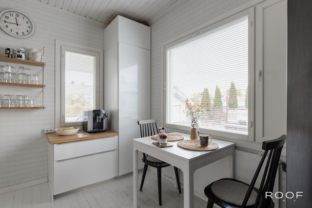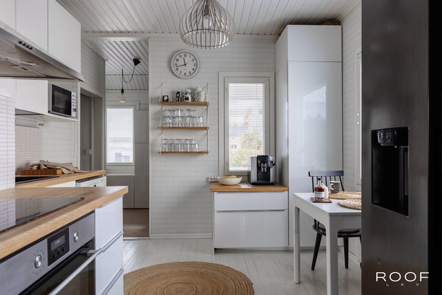 Tässä tilavassa kodissa on helppo asua, kun isommat remontit ovat jo takana päin ja lämmityskin hoituu helpolla ja ympäristöystävällisellä vesi-ilmalämpöpumpulla. Nopea valokuitu ilahduttaa etätyöläisiä ja nettipelien pelaajia. Kodin remonteissa on huomioitu ajan henkeen kuuluvia yksityiskohtia ja säilytetty talon lämmintä henkeä ja tunnelmaa.