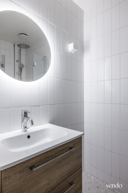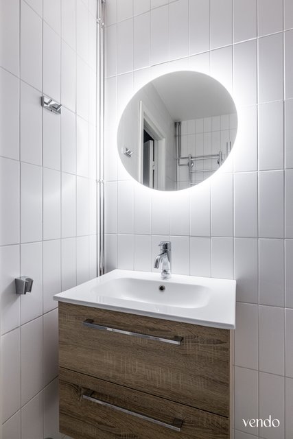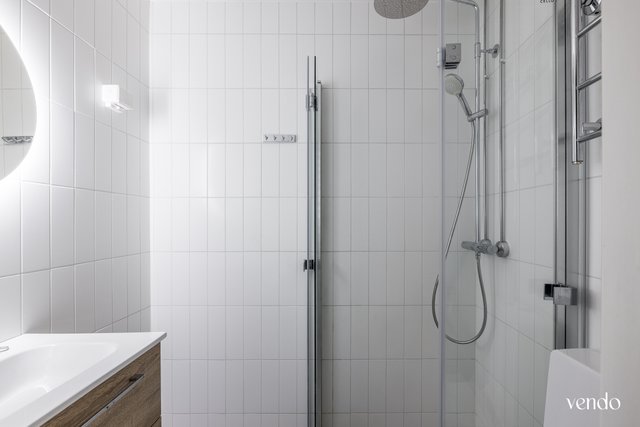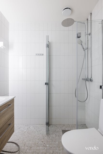 - WC-istuin, suihku, suihkuseinä, pesukoneliitäntä, peilikaappi, lattialämmitys, ja bidee-suihku