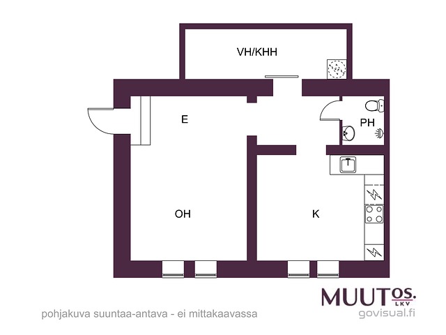 - Edellä mainittu pinta-ala saattaa tämän ikäisessä kohteessa poiketa olennaisestikin huoneiston nykyisen ja rakentamisaikaisen mittaustapojen ja standardien mukaan laskettavasta pinta-alasta. Huoneiston todellinen pinta-ala voi olla yhtiöjärjestyksessä, isännöitsijäntodistuksessa ja esitteessä mainittua pienempi tai suurempi. Hinta ei ole pinta-alaperusteinen. Yhtiöjärjestyksen mukainen huoneistoselitelmä: 1h+k. Myyjän ilmoituksen mukaan huoneiston käytössä on myös noin 6 m² varasto/khhtila