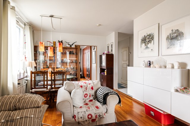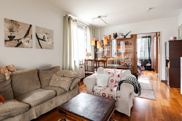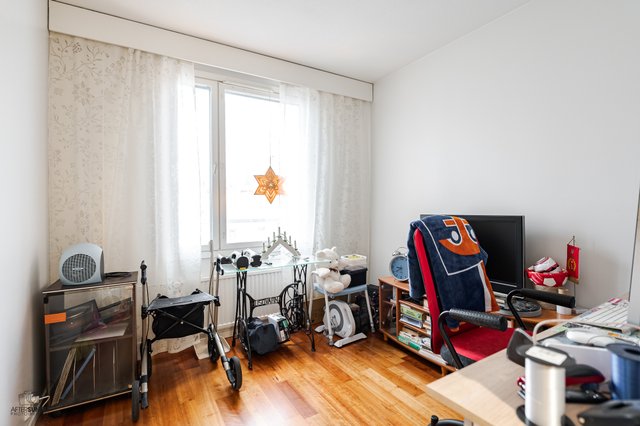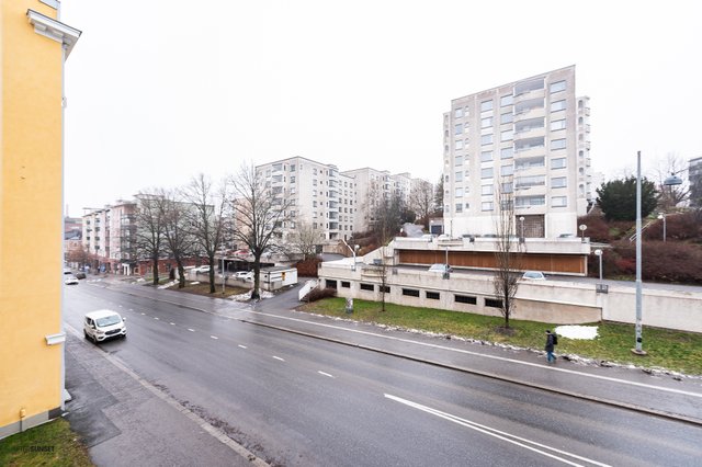 Tämä asunto sijaitsee kolmannessa kerroksessa ja ikkunoista avautuvat näkymät kolmeen ilmansuuntaan.