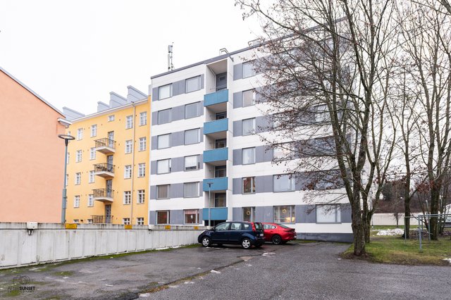 Nyt myynnissä siistikuntoinen asunto, lasitetulla parvekkeella Juhannuskylässä vain 700 m päässä Hämeenkadulta ja rautatieasemalta.