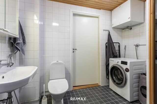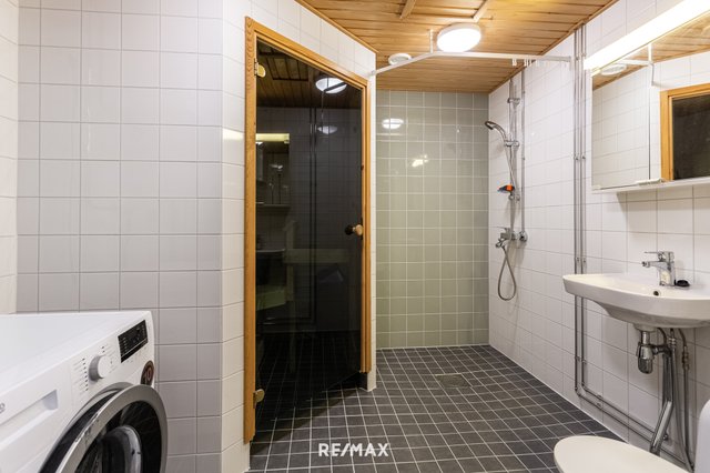 - Pesuhuone laatoitettu. Sähköinen lattialämmitys.