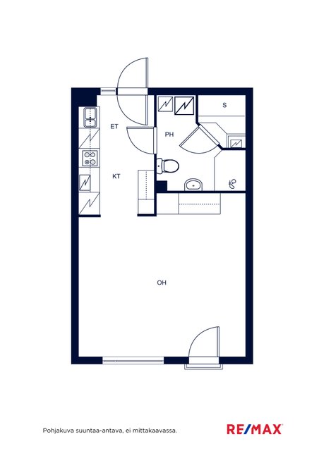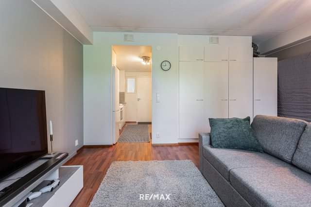 Asunnon 35 neliötä on suunniteltu tehokkaasti, tilava huone jonka sisustamiseen on monia mahdollisuuksia.