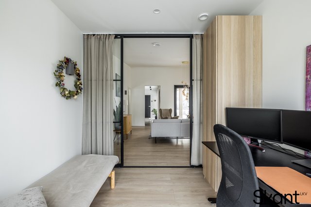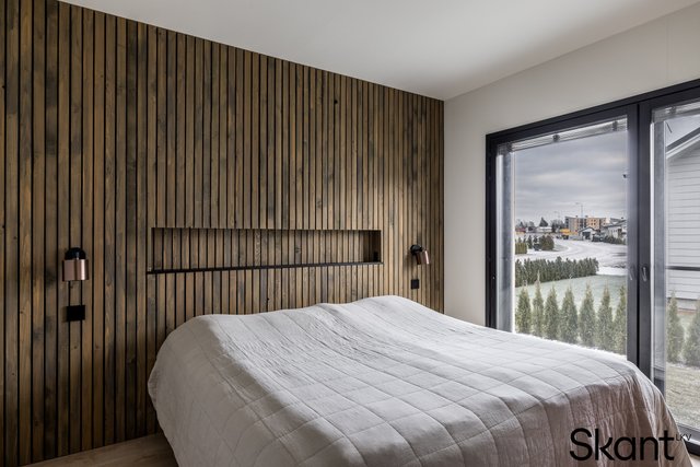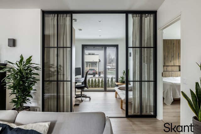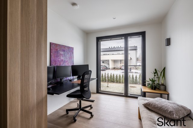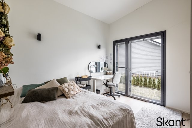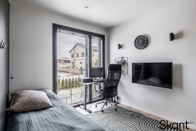 Kodissa on kolme tilavaa makuuhuonetta. Päämakuuhuoneessa on erillinen vaatehuone ja oma kylpyhuone, joka tuo hotellimaista luksusta arkeen. Lisäksi olohuoneen yhteydessä on tyylikäs lasiseinin rajattu kirjastohuone, joka soveltuu työtilaksi tai esimerkiksi vierashuoneeksi.